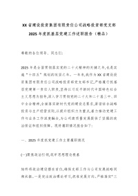 XX省建设投资集团有限责任公司战略投资部党支部2025年度抓基层