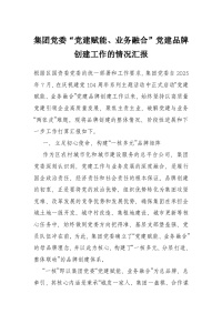 集团党委“党建赋能、业务融合”党建品牌创建工作的情况汇报
