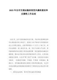 2025年全市交通运输系统党风廉政建设和反腐败工作总结