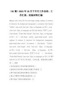 (81篇)2025年10月下半月工作总结、工作汇报、经验材料汇编