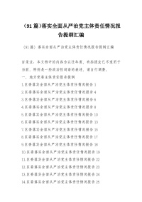 (91篇)落实全面从严治党主体责任情况报告提纲汇编