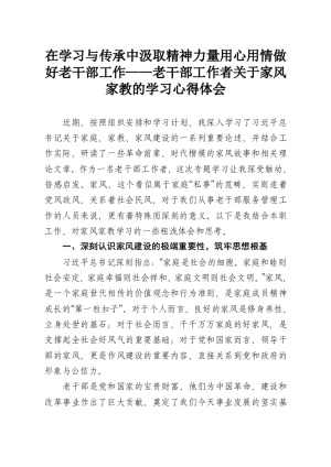 在学习与传承中汲取精神力量用心用情做好老干部工作——老干部工作者关于家风家教的学习心得体会