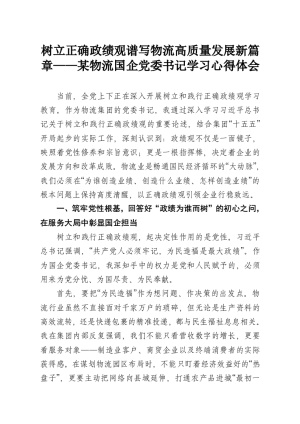 树立正确政绩观谱写物流高质量发展新篇章——某物流国企党委书记学习心得体会