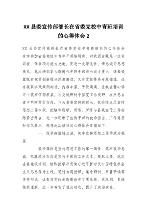 XX县委宣传部部长在省委党校中青班培训的心得体会2