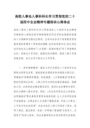 高校人事处人事科科长学习贯彻党的二十届四中全会精神专题培训心得体会