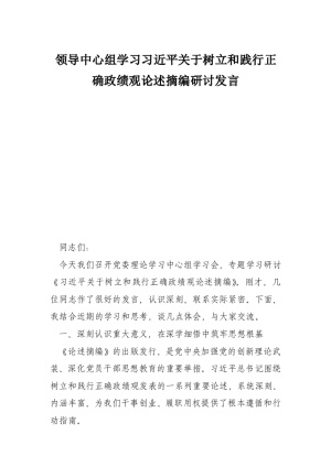 领导中心组学习***关于树立和践行正确政绩观论述摘编研讨发言
