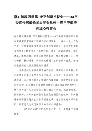 凝心铸魂强根基 守正创新担使命——XX县委宣传部部长参加省委党校中青年干部培训班心得体会