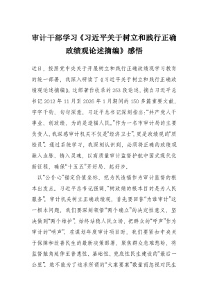 审计干部学习《***关于树立和践行正确政绩观论述摘编》感悟