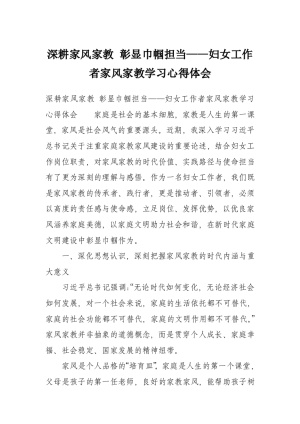 深耕家风家教 彰显巾帼担当——妇女工作者家风家教学习心得体会
