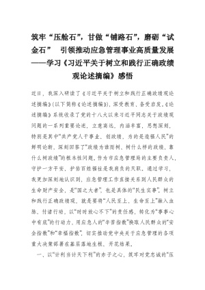 筑牢“压舱石”,甘做“铺路石”,磨砺“试金石” 引领推动应急管理事业高质量发展——学习《***关于树立和践行正确政绩观论述摘编》感悟