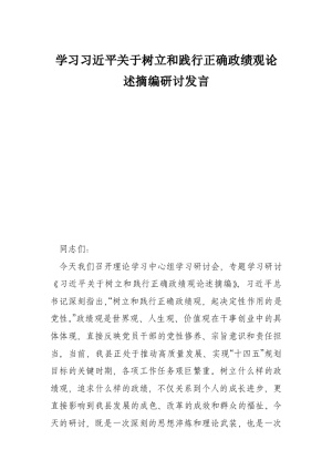 学习***关于树立和践行正确政绩观论述摘编研讨发言