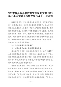 XX市政务服务和数据管理局党支部2025年上半年党建工作情况报告及下一步计划