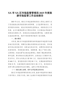 XX市XX区市场监督管理局2025年度旅游市场监管工作总结报告