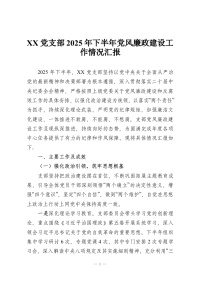 XX党支部2025年下半年党风廉政建设工作情况汇报