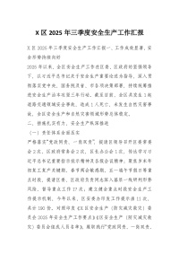 X区2025年三季度安全生产工作汇报