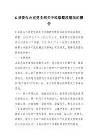 X县委办公室党支部关于巡察整改情况的报告