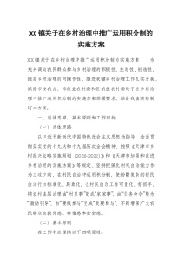 XX镇关于在乡村治理中推广运用积分制的实施方案