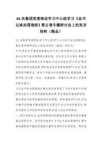 XX在集团党委理论学习中心组学习《总书记谈治国理政》第五卷专题研讨会上的发言材料(精品)