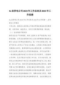 Xx县供电公司2024年工作总结及2025年工作思路
