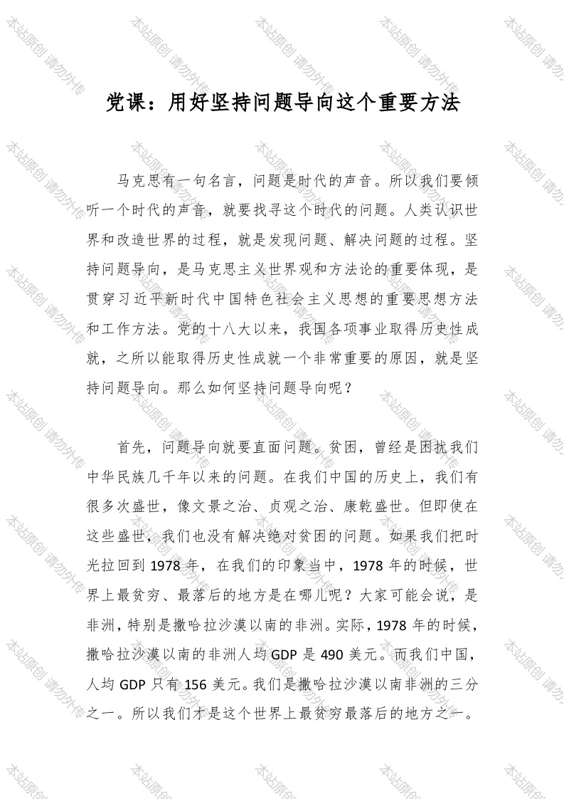 本站原创请勿外传本站原创请勿的本站原创请勿吻本站原创请勿外本站原创请勿党课:用好坚持问题导向这个重要方法本站本站本站原马克思有一句名言,问题是时代的声音。所以我们要倾就要找寻这个时代的问题。人类认识世界和改造世界的过程,就是发现问题、解决问题的过程。坚持问题导向,是马克思主义世界观和方法论的重要体现,是本站原创请勿外传贯穿习近平新时代中国特色社会主义思想的重要思想方法本站原创请勿和工作方法。党的十八大以来,我国各项事业取得历史性成就,之所以能取得历史性成就一个非常重要的原因,就是坚持问题导向。那么如何坚持问题导向呢?本站原创请勿外传本站原创本站原创请勿首先,问题导向就要直面问题。贫困,曾经是困扰我们华民族几千年以来的问题。在我们中国的历史上,我们有很多次盛世,像文景之治、贞观之治、康乾盛世。但即使在本站原创请勿外这些盛世,我们也没有解决绝对贫困的问题。如果我们把时光拉回到1978年,在我们的印象当中,1978年的时候,世本站原创请界上最贫穷、最落后的地方是在哪儿呢?大家可能会说,是非洲,特别是撒哈拉沙漠以南的非洲。实际,1978年的时候,撒哈拉沙漠以南的非洲人均GDP是490美元。而我们中国,人均GDP只有156美元。我们是撒哈拉沙漠以南非洲的三分本站原本站原本站原