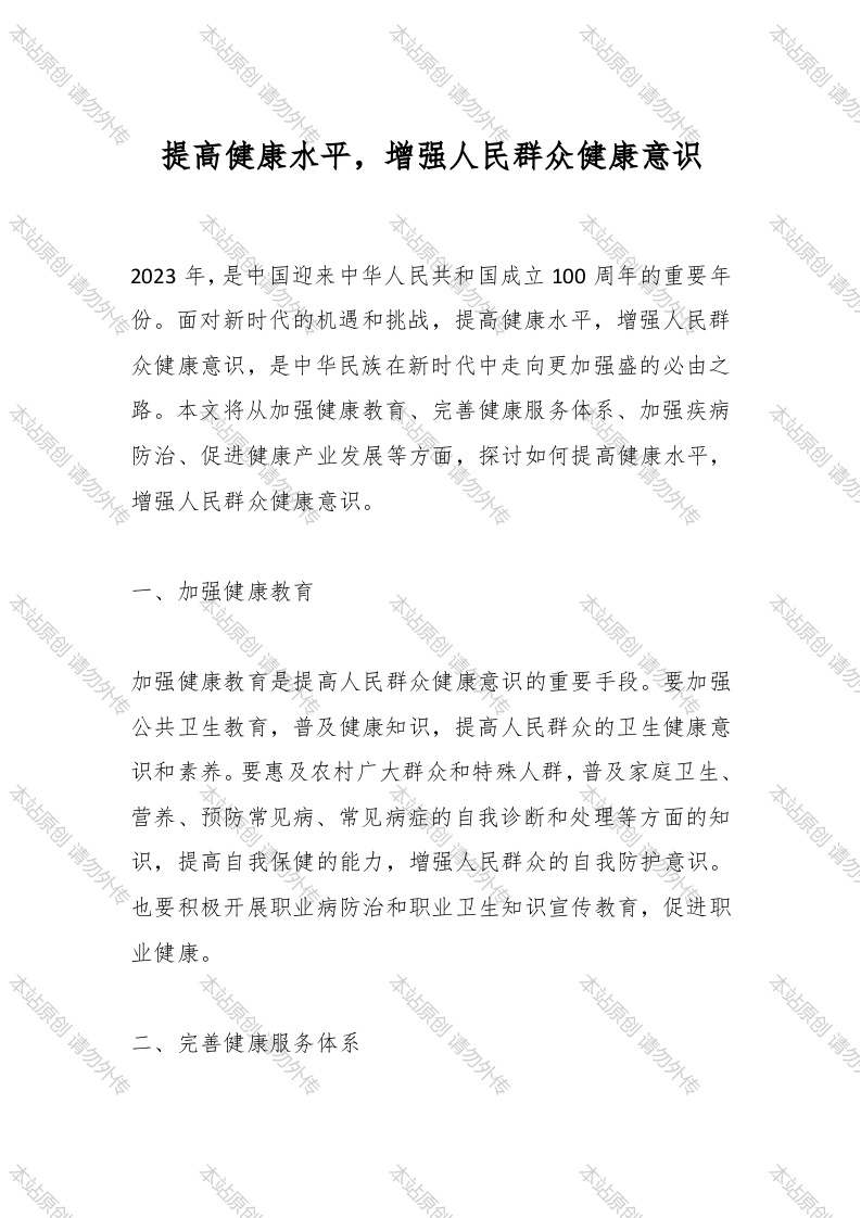本站原创请勿外传本站原创请勿外本站原创请勿外本站原创请勿本站原创请勿提高健康水平,增强人民群众健康意识本站原创请勿外传本站本站本站2023年,是中国迎来中华人民共和国成立100周年的重要年。面对新时代的机遇和挑战,提高健康水平,增强人民群众健康意识,是中华民族在新时代中走向更加强盛的必由之路。本文将从加强健康教育、完善健康服务体系、加强疾病本站原创请勿外传防治、促进健康产业发展等方面,探讨如何提高健康水平,增强人民群众健康意识。一、加强健康教育本站原创请勿外传创本站原创本站原创加强健康教育是提高人民群众健康意识的重要手段。要加强共卫生教育,普及健康知识,提高人民群众的卫生健康意识和素养。要惠及农村广大群众和特殊人群,普及家庭卫生、本站原创请勿外传营养、预防常见病、常见病症的自我诊断和处理等方面的知识,提高自我保健的能力,增强人民群众的自我防护意识。本站原创请要积极开展职业病防治和职业卫生知识宣传教育,促进职业健康。本站原创请勿外传本站原仓二、完善健康服务体系本站原创请勿外传本站原创请勿外传本站原创请勿外传本站原合本站原创请勿外传本站原创本站原创请ク本站原创勿本站原创请勿善健康服务体系是保障人民群众健康的重要基础条件。要完善社区卫生服务体系,通过多渠道、多层次、全方位开展卫生健康服务,为居民提供健康体检、疾病防治、健康咨询、本站原创请勿外传家庭医生签约等服务。加快推进数字化健康服务,⊙发展远程疗、大数据健康管理、智慧健康预警等创新型健康服务,提高健康服务效能。本站原创请勿外传三、加强疾病防治请勿外本站原创请勿外本站原创请勿外传加强疾病防治是保障人民群众健康的重要举措。要坚持以人民健康为中心,推进疾病防控工作,完善传染病、慢性病等预防和控制机制,提高疾病防控能力和效果。加强医疗卫生机构感染控制王作,建立卫生应急管理机制,做好突发公共四、促进健康产业发展本站原创请勿本站原请勿本站原创请业发展。要推动医药卫生产业转型升级,加快中西医结合、中药现代化、药物创新和智能健康设备研究发,培育壮大本站原创请勿外传现代健康服务产业,打造具有国际竞争力的健康产业集群。勿外传勿外传勿外传本站原合本站原本站原创请勿外传本站原创请本站原创请勿本站原创请勿之,提高健康水平,增强人民群众健康意识,是一系统工程,需要政府、医疗卫生机构、社会组织和广大居民共同努力。界有通过共同努力,才能让健康成为每个人的基本权本站原创请勿外传利,建设健康中国。请勿外传站原创请勿外传站原创请勿外传本站原创请勿外传本站原创请勿外传本站原创请勿外传本站原创请勿外传本站原创请勿外传本站原创请勿外传本站原创请勿外传本站原创请勿外传本站原创请勿外传本站原创请勿外传本站原创请勿外传本站原创请勿外传本站原创请勿外传本站原创请勿外传本站原创请勿外传本站原创请勿外传本站原合本站原合