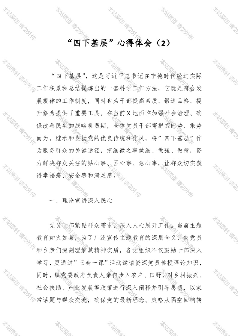 本站原创请勿外传本站原创请勿外传本站原创请勿外本站原创请勿外传本站原创请“四下基层”心得体会(2)本站原本站“四下基层”,这是习近平总书记在宁德时代经过实际站原创工作积累和总结提炼出的一套科学王作方法,它既是符合发一展规律的工作制度,同时也为干部提高素质、锻造品格、提升修为提供了重要工具。在当前X地面临加强社会治理、确本站原创请勿外传保改善民生的战略机遇期,全体党员干部需把握时势、乘势本站原创请勿为,继承和发扬党的优良传统和作风,将”四下基层”作为服务群众的关键途径,把细微之事做细、做强、做精,努力解决群众关注的贴心事×困心事、急心事,让群众切实获本站原创请勿外传得幸福感、安全感和满足感。创清中请勿外本站原创请勿外传本站原创请勿一、理论宣讲深入民心本站原创请勿外传党员手部紧贴群众需求,深入人心展开工作。当前主题教育如火如茶,为了广泛宣传主题教育的深层含义,使党员本站原创请勿和乡亲们深刻理解其精神实质,各党组织不仅鼓励干部深入学习,更通过”三会一课”活动邀请资深党员传授理论知识,同时,镇党委政府负责人亲自步入农户、田野,对乡村振兴、社会扶助、产业发展等政策进行深入阐释并引导思想,以家本站原本站原本站原本站原创请勿外传本站原创请勿本站原创请本站原创请勿本站原创请勿为众口铄金。通过超过300场的针对性、差异化、精确化的宣讲活动,实现了理论政策的广泛传播。本站原创请勿外传本站二、地调研提升动力请勿外传本站原创请勿外传本站原创请勿外传本站原创请勿伴随主题教育的推进,镇在推动村集体经济增长及民生改善中继续领先。坚持从实地获取第一手资料,从脚步沾泥本站原创请勿外传中洞见实情,采用“深入基层”的方法紧贴民生课题,兴起调查研究之势,确保民情需求勘察不流于形式。通过持续优化“党组织十”模式,指导村级党组织有效整合资产和资源,巩固村集体经济,为民生提供坚实保障。镇以产业振兴为导向,因地制宜促进特色农业,积极引入和推广新技术、新品种,在特色养殖上下功夫,加速现代农业的步伐,为乡村振本站原创请勿本站原创请勿外传信访接待深化合下本站原创请ク勿タ本站原创请立足于将理论政策深入基层,镇以深化主题教育为宗旨,保持与群众紧密联系,深入基层真实探访民情,实心解决问题,以从机关到现场的转变促进问题的实际解决。镇书记、本站原创请勿外传镇长带头接待群众,面对面解答困惑,解决问题。针对群众本站原创请心的大小事项,进行有效调解,力求在问题萌芽时解决。本站原本站原本站原本站原创请勿外传本站原创本站原创请本站原创请勿本站原创请勿入开展矛盾纠纷的全面排查和化解,绩效显著。同时,利用“8十”社会治理模式,依托党员先锋队、党员示范岗等资源,引导党员志愿者深入村落,真正实现服务群众”最后本站原创请勿外传公里”的目标。请勿外传站原创请勿外传原创请勿外传四、现场办公提升效力本站原创请勿外传从传统办公室到田间地头,坚持将”办公桌》设置在群众身边。通过将办公空间从机关天楼转移到农户附近,,同群共坐讨论,快速响应并解决”急难愁盼”的问题。结合主题教育,各党支部将活动带到工作前沿,镇村干部主动深入线聆听民意、洞察民情,不断完善工作风格和服务能力,切实践行”干部多奔波,群众少麻烦”的服务理念,让群众细致了解民生状况,即时解答问题。定期组织相关人员开展本站原创请突发事件应急处置能力提升活动,通过实战演练,大幅提高镇村应急响应能力,提升居民的安全意识。常态化进行安全任落实到位。“四下基层”既源自实践又引领实践,其运作成效如何,群众感知最为深刻。本站原创请勿外传原创请勿外传原创请勿外传本站原创请勿外传本站原创请勿本站原合