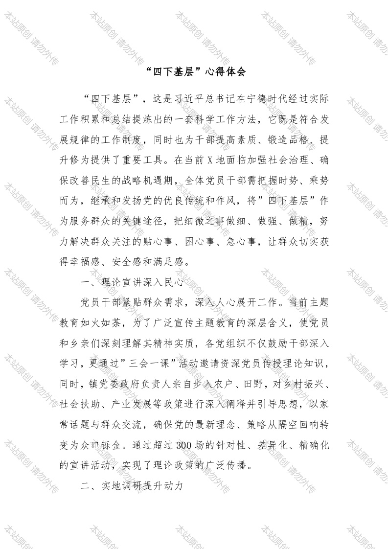 本站原创请勿外传本站原创请勿外传本站原创请勿外传本站原创请勿外传本站原创请四下基层”心得体会“四下基层”,这是习近平总书记在宁德时代经过实际本站原创请勿外传工作积累和总结提炼出的一套科学工作方法,它既是符合发规律的工作制度,同时也为干部提高素质、锻造品格、提升修为提供了重要工具。在当前X地面临加强社会治理、确保改善民生的战略机遇期,全体党员干部需把握时势、乘势本站原创请勿外传而为,继承和发扬党的优良传统和作风,将”四下基层”作本站原创请勿为服务群众的关键途径,把细微之事做细、做强、做精,努解决群众关注的贴心事、困心事、急心事,让群众切实获得幸福感、安全感和满足感。本站原创请勿外传本站原创党员干部紧贴群众需求,深入人心展开工作。当前主题育如火如茶,为了广泛宣传主题教有的深层含义,使党员和乡亲们深刻理解其精神实质,各党组织不仅鼓励干部深入本站原创请勿外学习,更通过”三会一课”活动邀请资深党员传授理论知识,同时,镇党委政府负责人亲自步入农户、田野,对乡村振兴、本站原创请社会扶助、产业发展等政策进行深入阐释并引导思想,以家常话题与群众交流,确保党的最新理念、策略从隔空回响转本站原创请勿外传变为众口铄金。通过超过00场的针对性、差异化、精确化的宣讲活动,实现了理论政策的广泛传播。原创请勿外传本站原创请二、实地调研提升动力勿外传本站原本站原本站原创请勿外传本站原创本站原创请勿本站原创ク本站原创请伴随主题教育的推进,镇在推动村集体经济增长及民生改善中继续领先。坚持从实地获取第一手资料,从脚步沾泥中洞见实情,采用“深入基层”的方法紧贴民生课题,兴起本站原创请勿外传调查研究之势,确保民情需求勘察不流于形式。通过持续优“党组织十”模式,指导村级党组织有效整合资产和资源,巩固村集体经济,为民生提供坚实保障。镇以产业振兴为导向,因地制宜促进特色农业,积极引入和推广新技术、新品本站原创请勿外传种,在特色养殖上下功夫,加速现代农业的步伐,为乡村振兴注入新的活力。请勿外传请勿外传本站原创请勿三、信访接待深化合力立足于将理论政策深入基层,镇以深化主题教育为宗旨,保持与群众紧密联系,深入基层真实探访民情,实心解决问题,以从机关到现场的转变促进问题的实际解决。镇书记、本站原创请勿面对面解答困惑,解决问题。针对群众关心的大小事项,进行有效调解,力求在问题萌芽时解决。深入开展矛盾纠纷的全面排查和化解,绩效显著。同时,利用“8十”社会治理模式,依托党员先锋队、党员示范岗等本站原创请一公里”的目标。四现场办公提升效力本站原创请勿外传从传统动公室到田间地头,坚持将”办公桌”设置在群本站原创请勿身边。通过将功公空间从机关大楼转移到农户附近,同群本站原本站原本站原本站原创请勿外传本站原创请勿本站原创请勿本站原创请勿本站原创请共坐讨论,快速响应并解决”急难愁盼”的问题。结合主题教育,各党支部将活动带到工作前沿,镇村干部主动深入一线聆听民意、洞察民情,不断完善工作风格和服务能力,本站原创请勿外传切实践行”牙部多奔波,群众少麻烦”的服务理念,让群众切感受到便捷高效的服务体验。乡镇领导亲自走访困难户,细致了解民生状况,即时解答问题。定期组织相关人员开展突发事件应急处置能力提升活动,通过实战演练,大幅提高本站原创请勿外传镇村应急响应能力,提升居民的安全意识。常态化进行安全隐患排查与整治,与企业签订安全责任书,确保安全生产责落实到位。“四下基层”既源自实践又引领实践,其运作成效如何,群众感知最为深刻。本站原创请勿外传本站原创请勿外传本站原创请勿外传本站原创请勿外传本站原创请勿外传本站原创请勿外传本站原创请勿外传本站原创请勿外传本站原创请本站原创请勿外传本站原创请勿外传本站原创请勿外传本站原创请勿外传本站原合本站原合本站原合本站原合