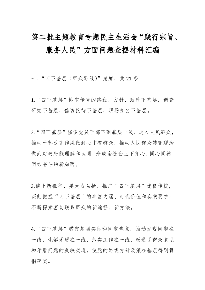 第二批主题教育专题民主生活会“践行宗旨、服务人民”方面问题查摆材料汇编