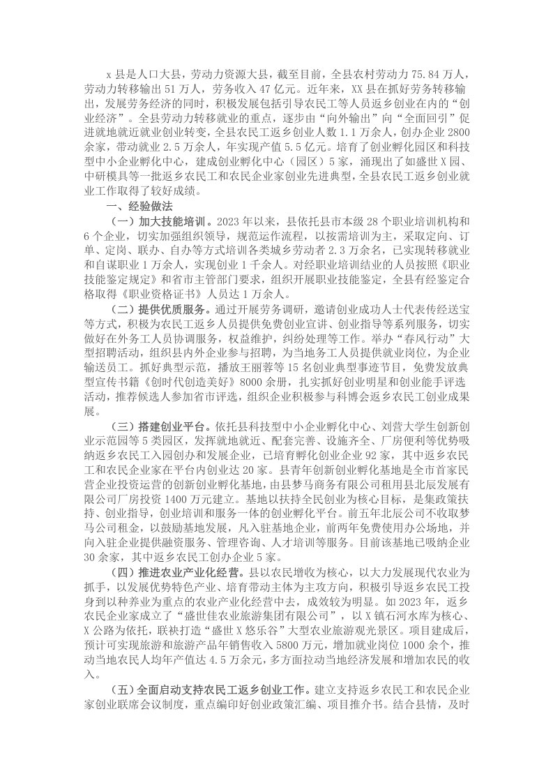 首页材料汇编回引农民工返乡创业情况的调研报告