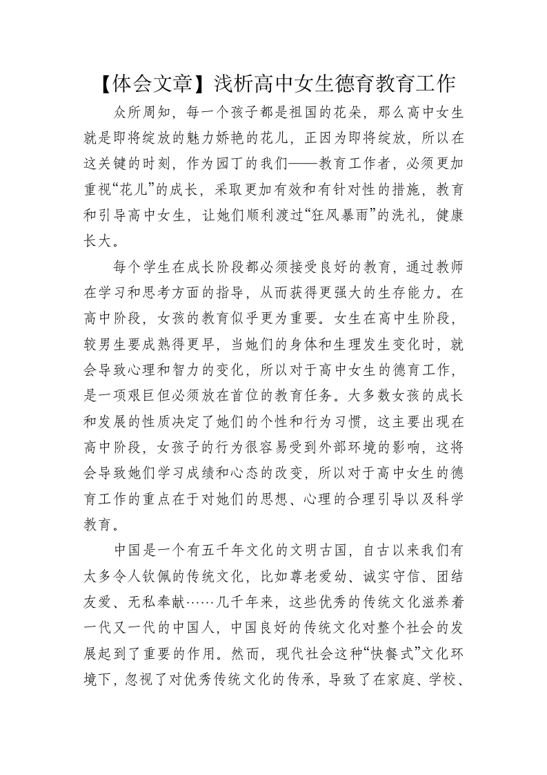 首页讲课讲稿【体会文章】浅析高中女生德育教育工作