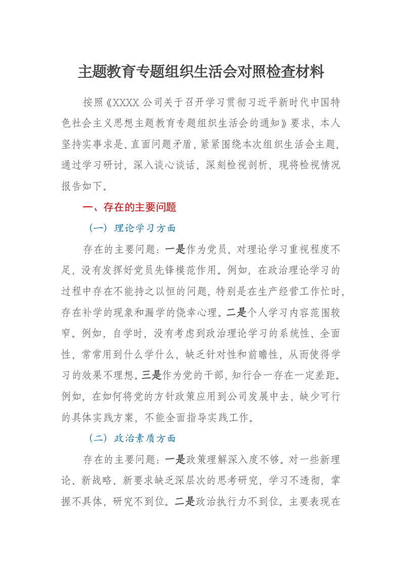 首页讲课讲稿主题教育专题组织生活会对照检查材料七个方面、政绩观