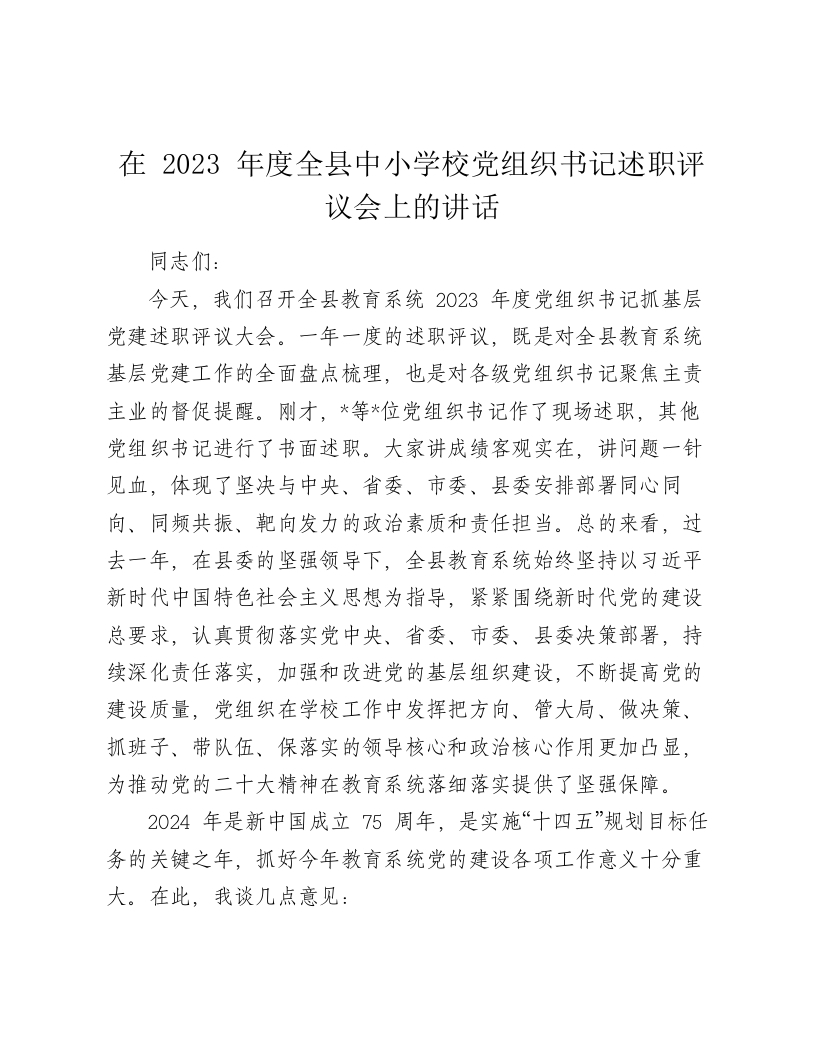在2023年度全县中小学校党组织书记述职评议会上的讲话
