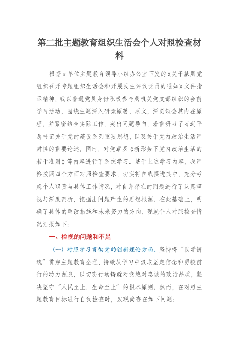 首页讲课讲稿第二批主题教育组织生活会个人对照检查材料四个方面(2)