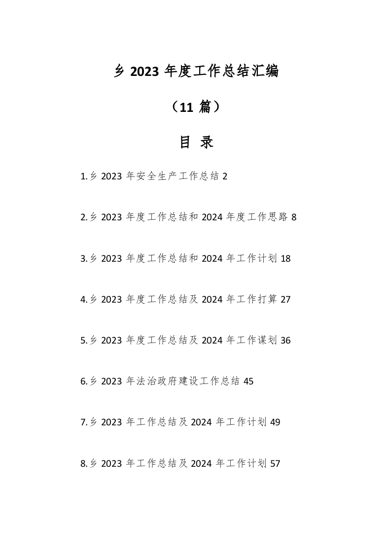 11篇乡2023年度工作总结汇编