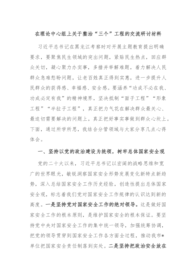 在理论中心组上关于整治“三个”工程的交流研讨材料