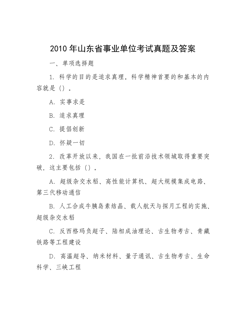 2010年山东省事业单位考试真题及答案(1)