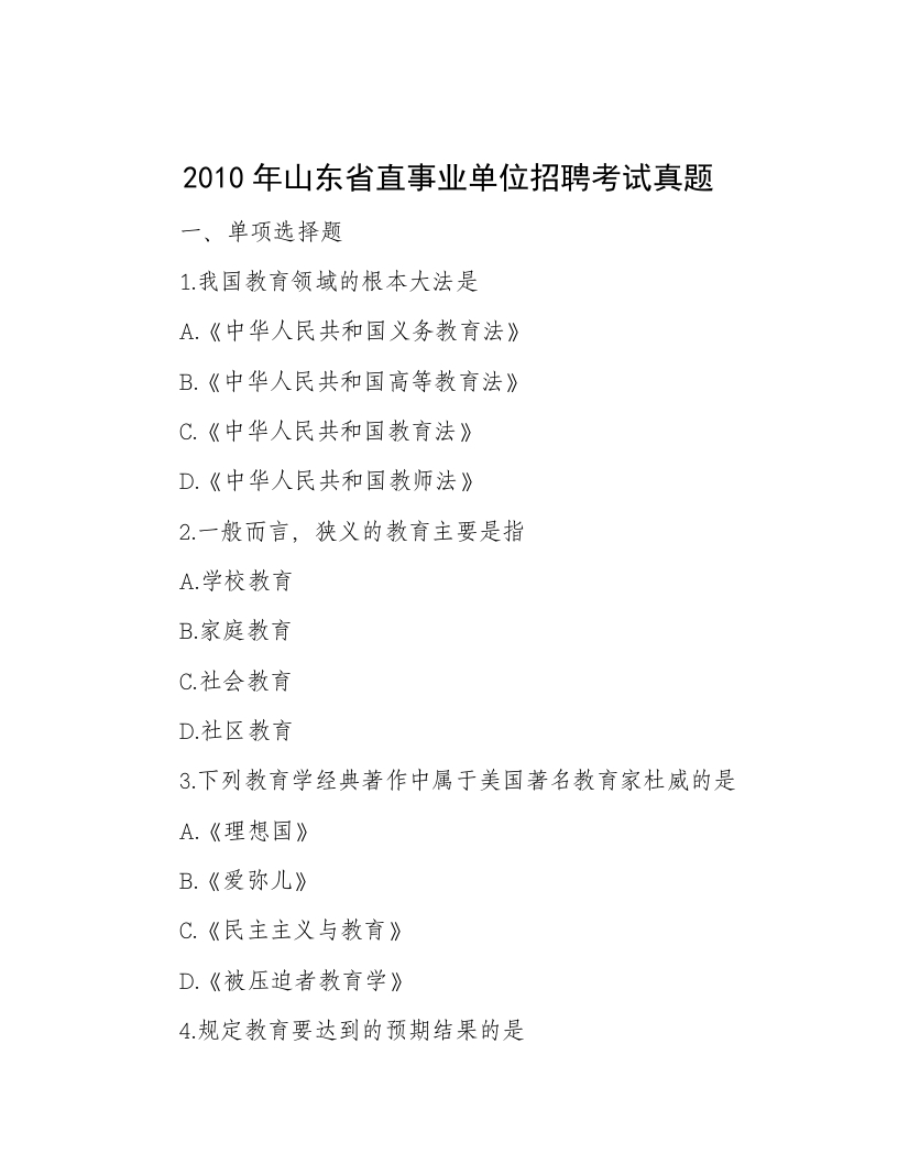 首页公考遴选2010年山东省直事业单位招聘考试真题