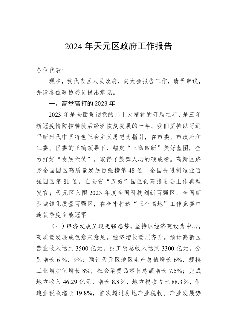 2024年天元区政府工作报告20240117