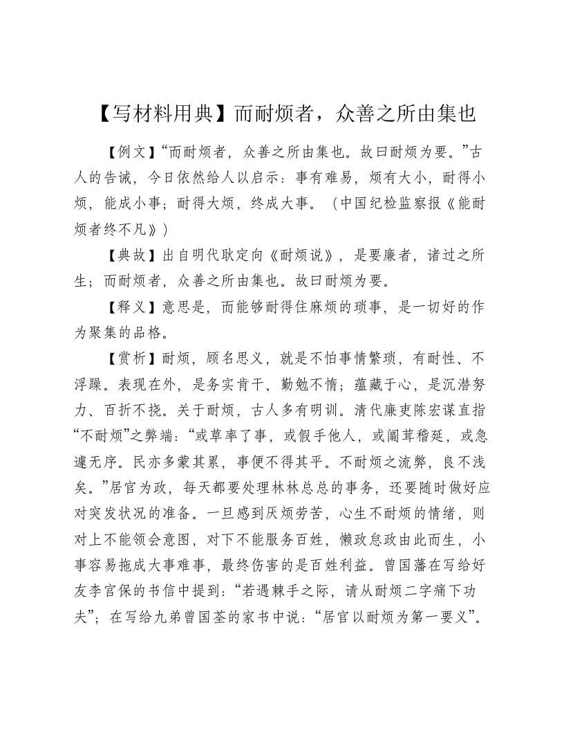 首页每日金句【写材料用典】而耐烦者,众善之所由集也