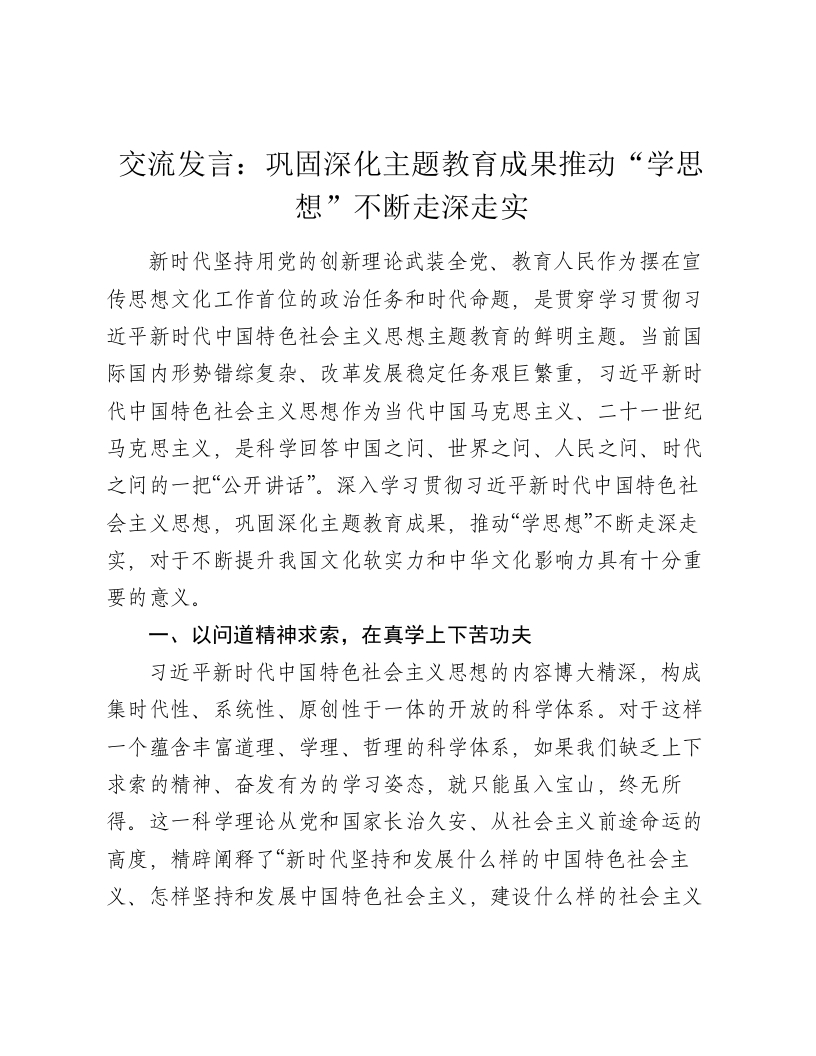 交流发言:巩固深化主题教育成果 推动“学思想”不断走深走实