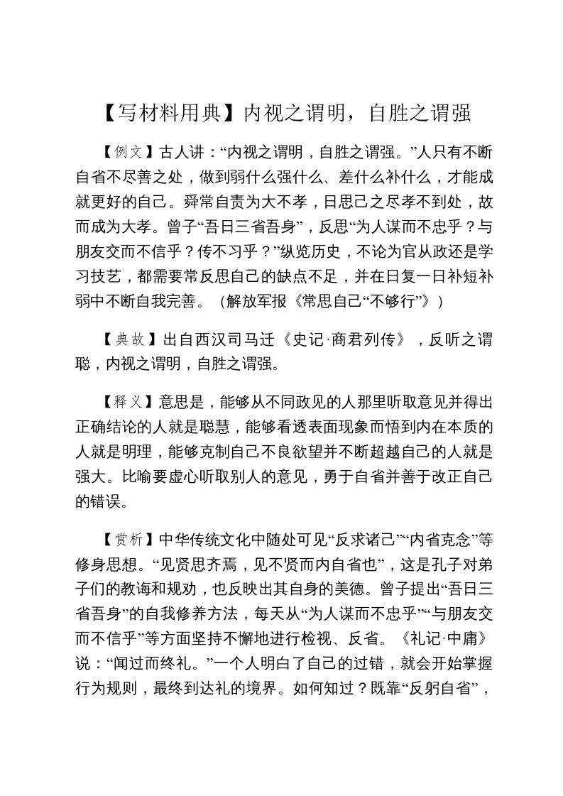 首页每日金句【写材料用典】内视之谓明,自胜之谓强