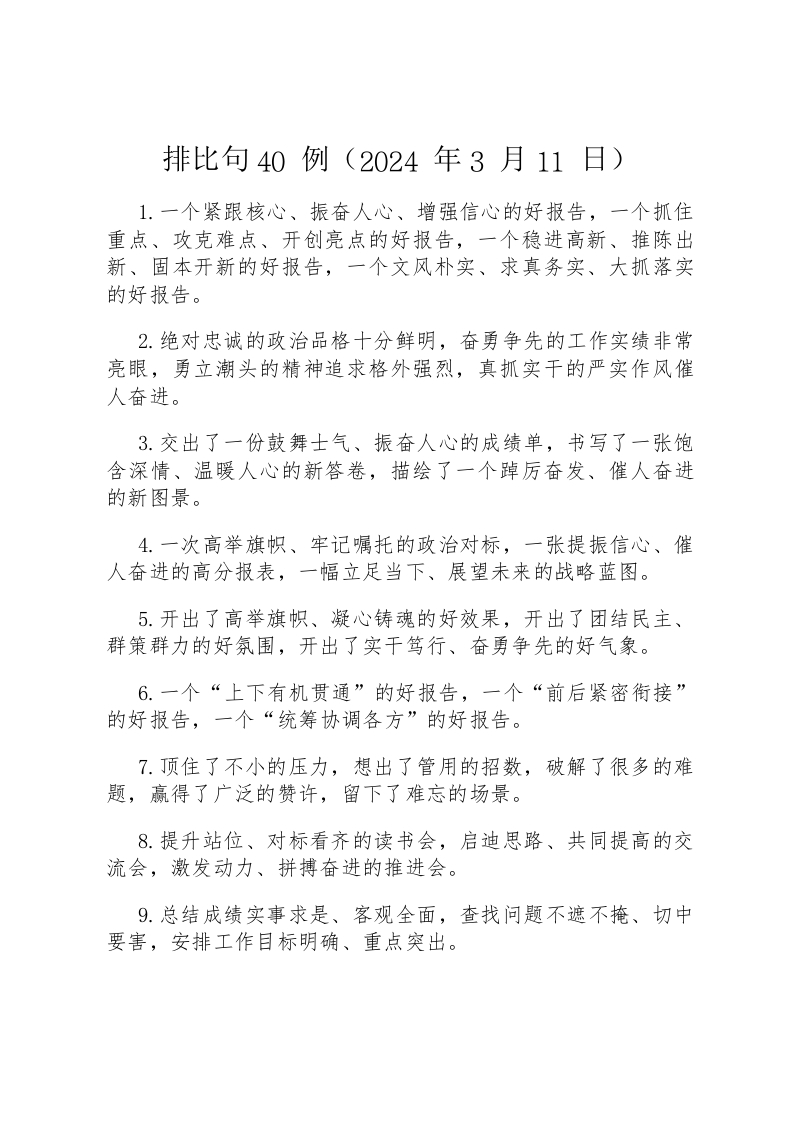 排比句40例(2024年3月11日)