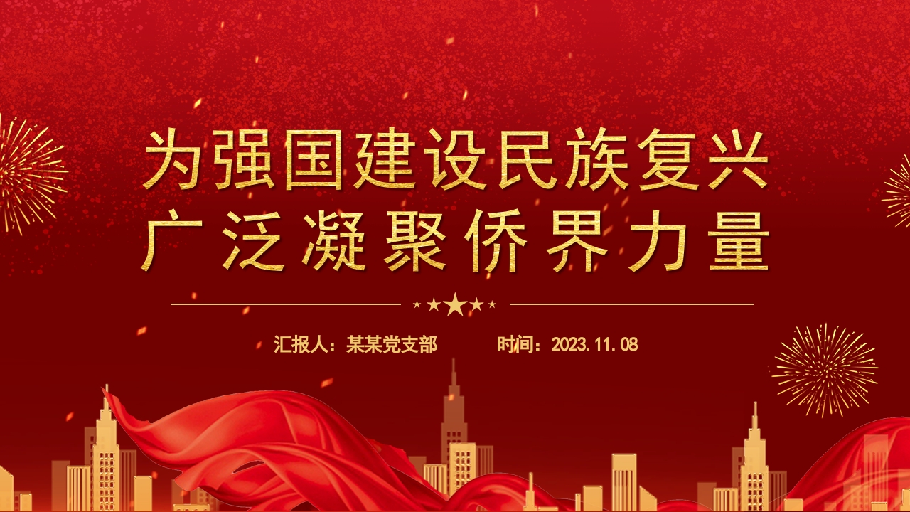 首页PPT模板大气精美为强国建设民族复兴广泛凝聚侨界力量主题党课PPT课件