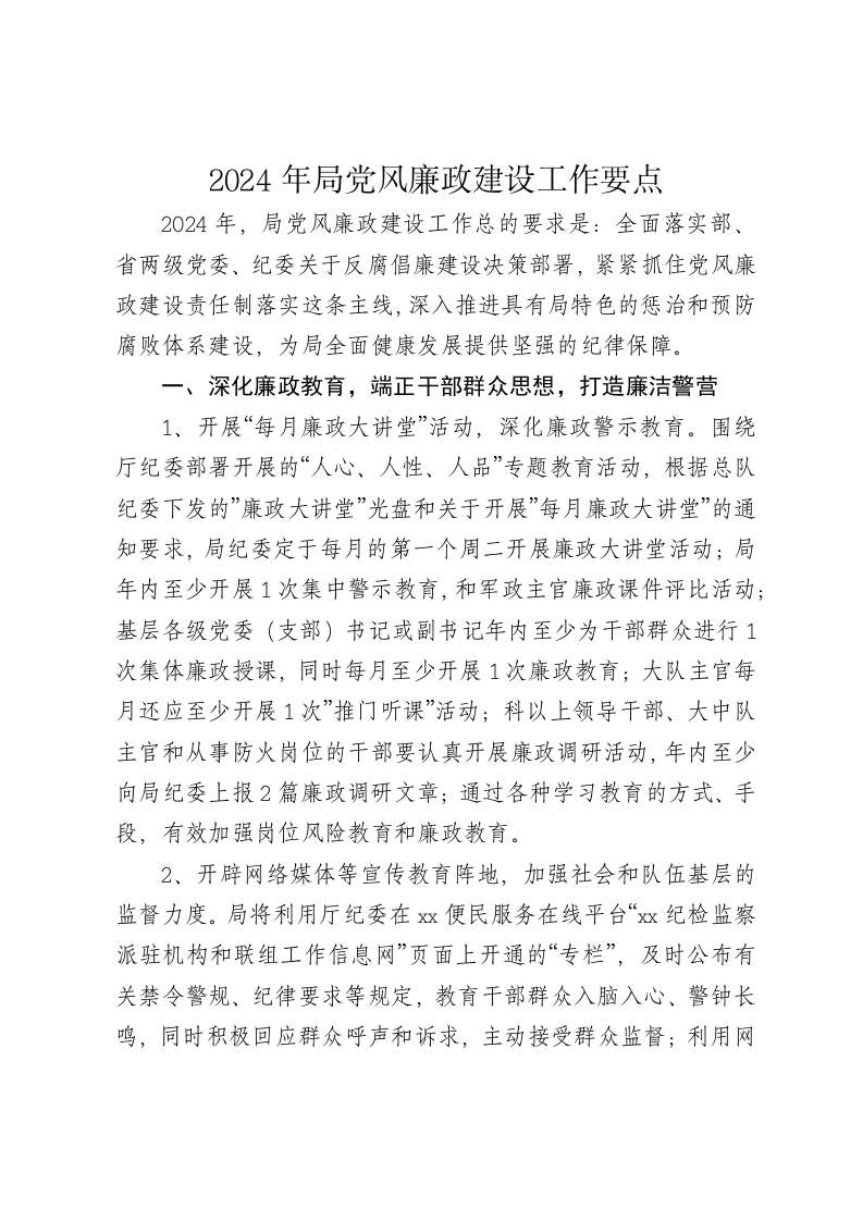 2024年局党风廉政建设工作要点