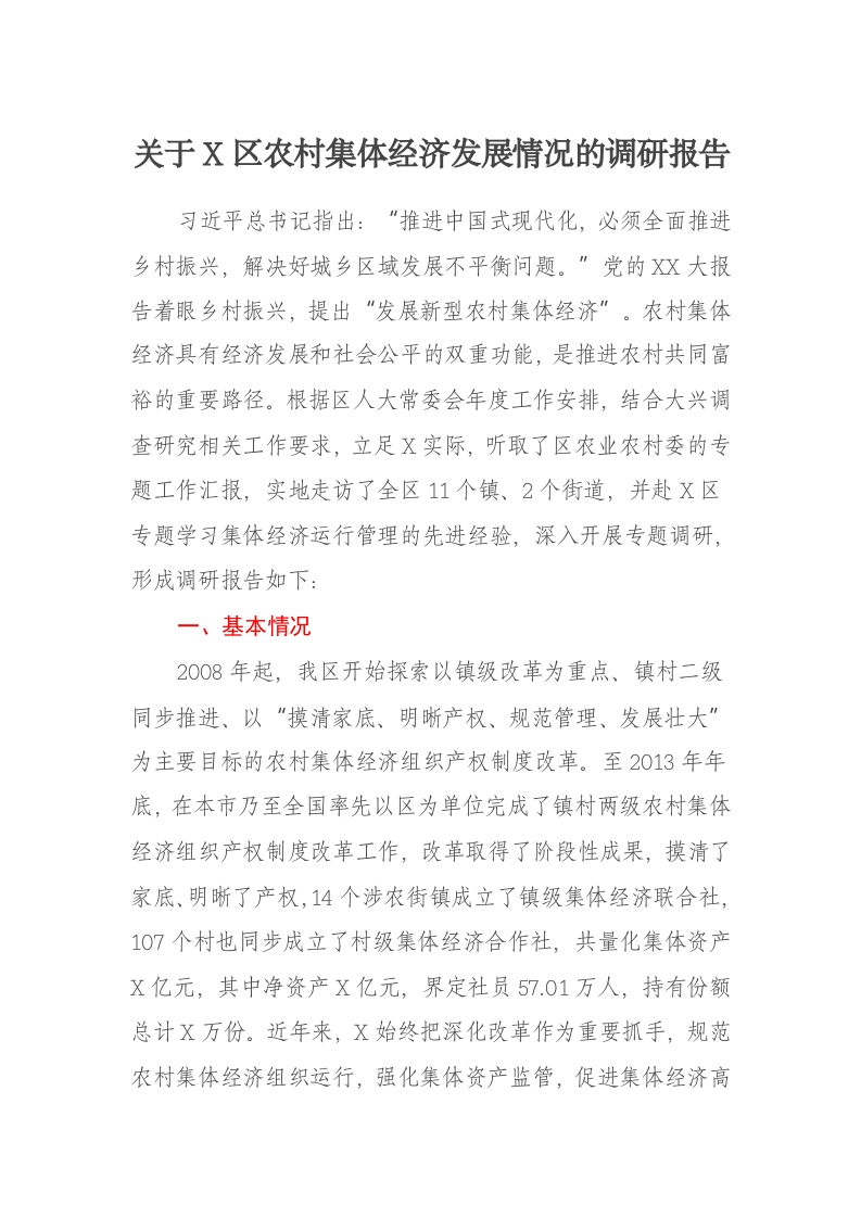 首页精选范文关于X区农村集体经济发展情况的调研报告