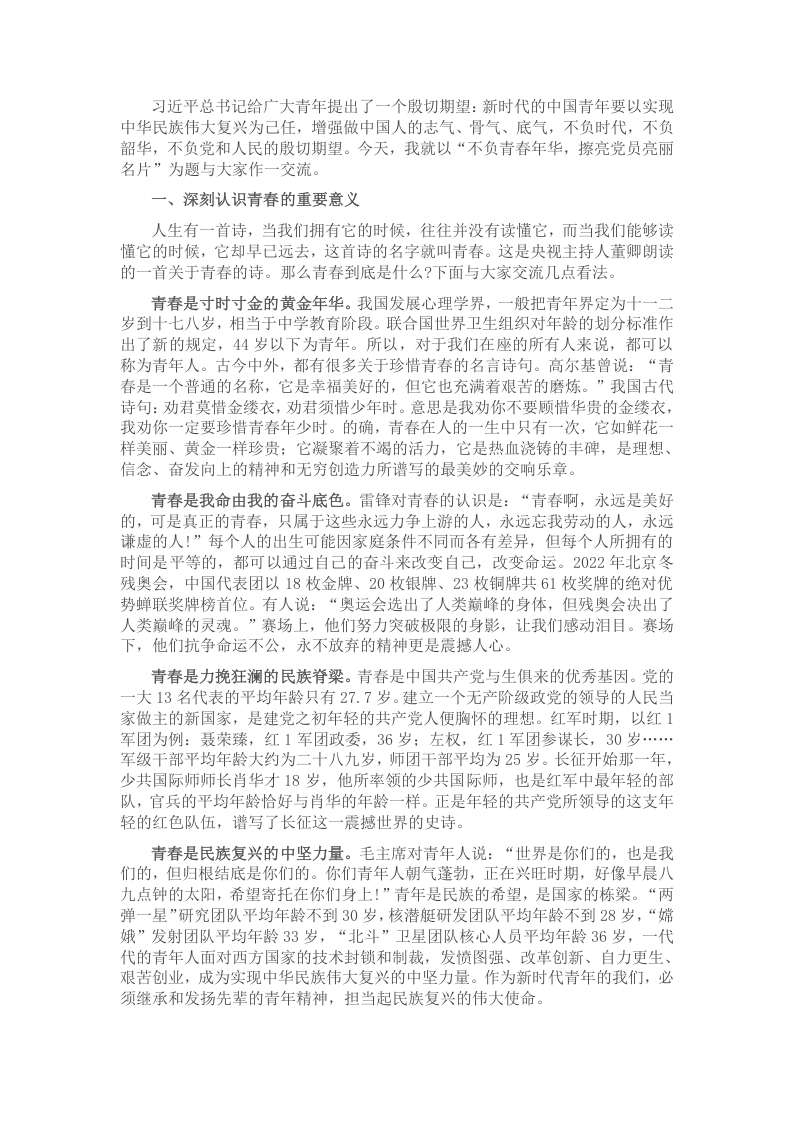 首页讲课讲稿不负青春年华 擦亮党员亮丽名片