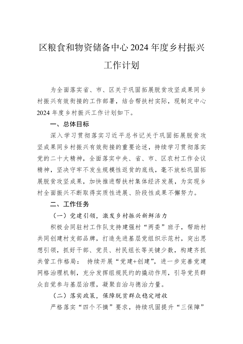 区粮食和物资储备中心2024年度乡村振兴工作计划