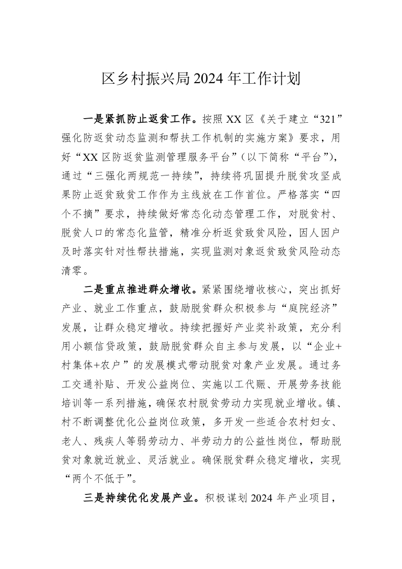 首页学习提升区乡村振兴局2024年工作计划20240319