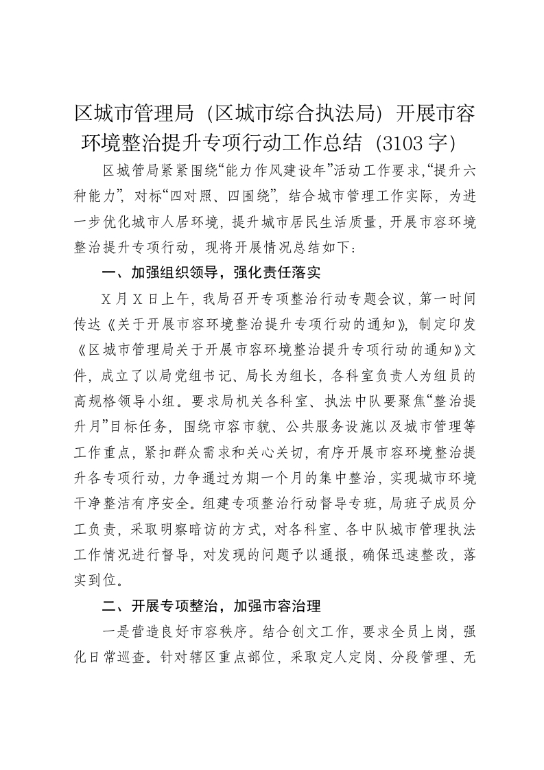 区城市管理局区城市综合执法局开展市容环境整治提升专项行动工作总结3103字