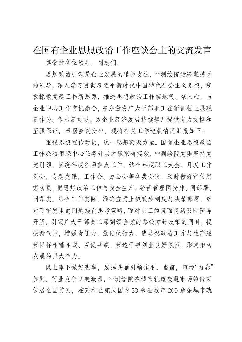 首页工作文档在国有企业思想政治工作座谈会上的交流发言